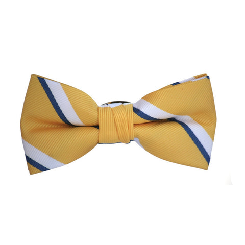 Yellow with Navy and White Stripe Preppy Bow Tie