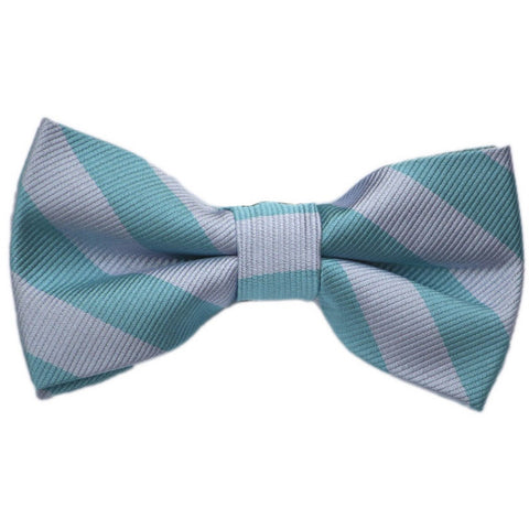 Teal and Silver Stripe Bow Tie