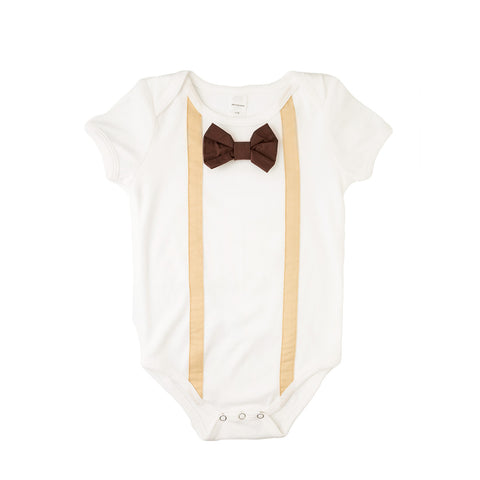 Tan Suspenders Brown Bowtie Bodysuit