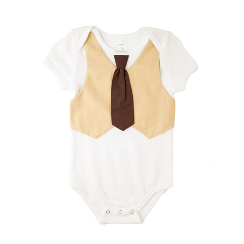 Tan Vest Brown Tie Bodysuit