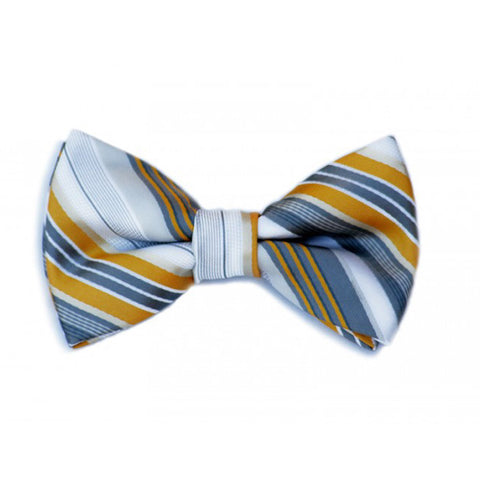 Yellow with Navy and White Stripe Preppy Bow Tie