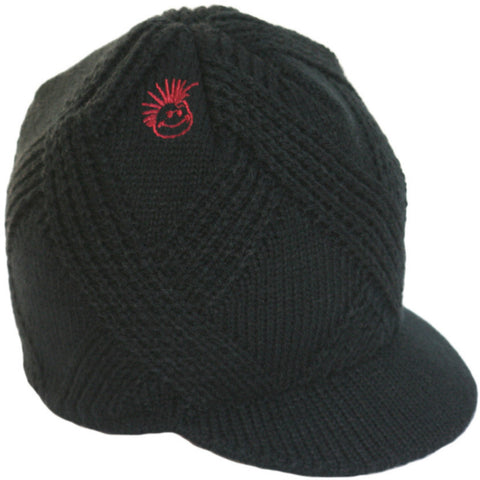 Knuckleheads - Black Boy's Baby Visor Beanie Hat with Stripes Detail