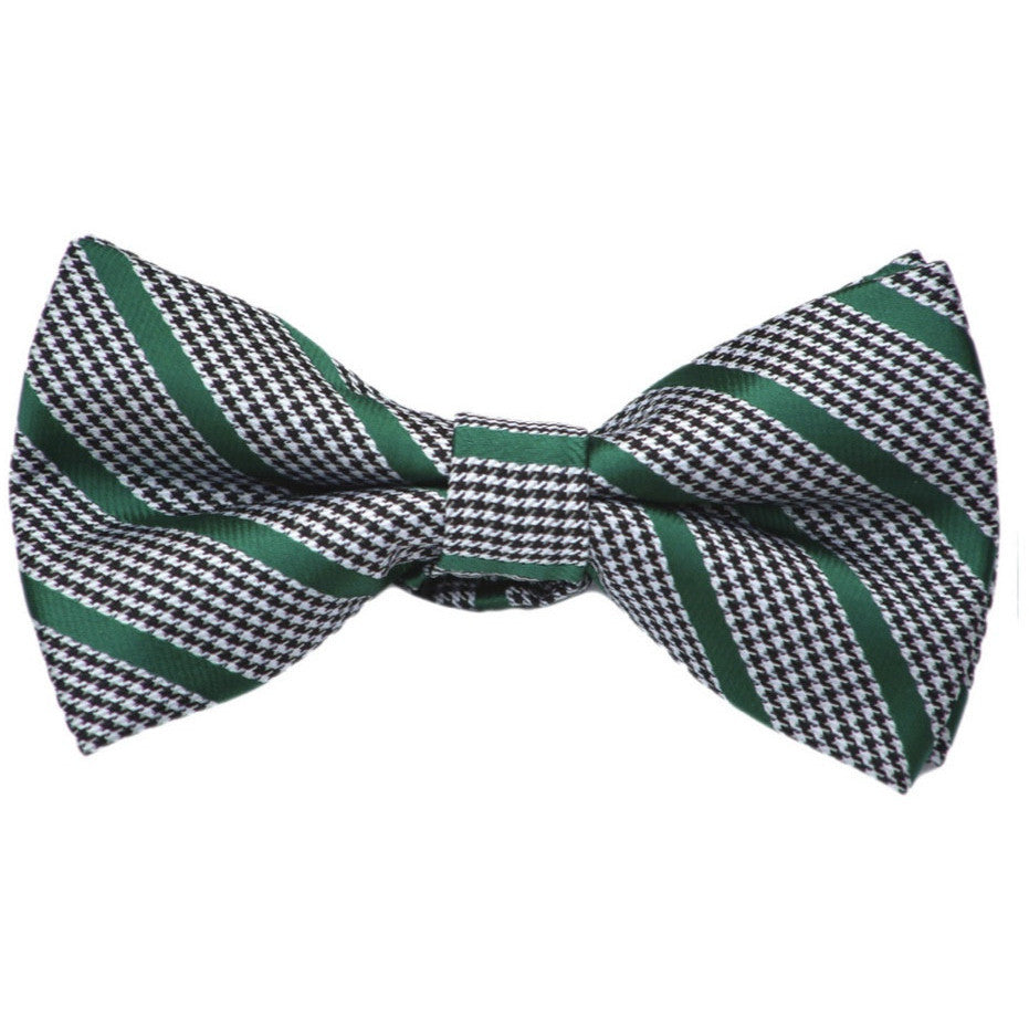 Houndstooth with Green Stripe Bow Tie